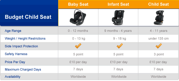 Safety Seats are available for hire at all Budget stations across the UK, Europe and Worldwide.